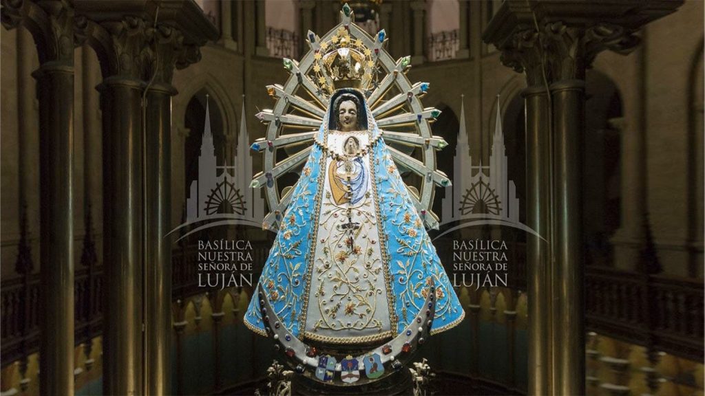 Un’immagine in terracotta dell’Immacolata della grandezza di 38 cm era trasportata da un carro verso il nord, arrivato al fiume Luján il carro non fu più in grado di proseguire; una forza misteriosa ne tratteneva le ruote. In quel luogo si verificarono molti miracoli e iniziarono subito i pellegrinaggi. L’immagine fu collocata dapprima in una casa, si costruì una cappella e nel 1773 una grande basilica. Gli argentini “confessano” affermando: “La Vergine di Luján è tutta nostra, é nostra Madre e nostra Regina. Ella è un patrimonio di tutto il popolo. Luján è la nostra gloria, Luján è il nostro focolare, Luján è il nostro Magnificat”. Nei raggi della corona c’è la scritta: “La Vergine di Lujá è la prima fondatrice di questa città”.